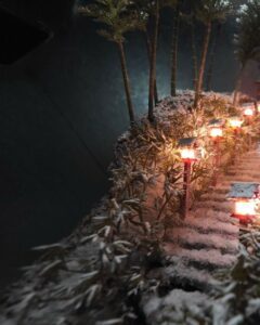 雪灯篭と石階段のジオラマ