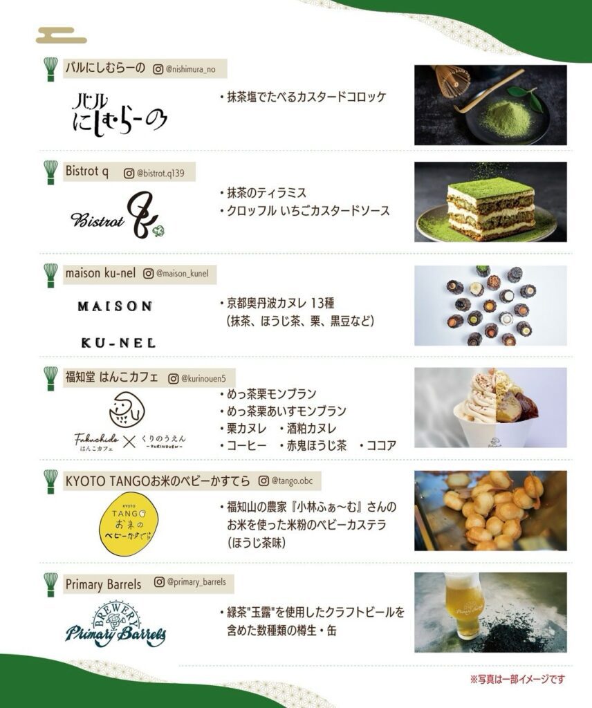 山城屋茶舗は、通常の茶葉販売に合わせて成美高校とコラボした『めっちゃ抹茶モカ』を、他店舗も当店がアドバイザーで入らせてもらった京都北部の茶葉使用メニューを携えて、お茶に普段馴染みのない方でも楽しんでいただけるように会場を盛り上げてくれます!
