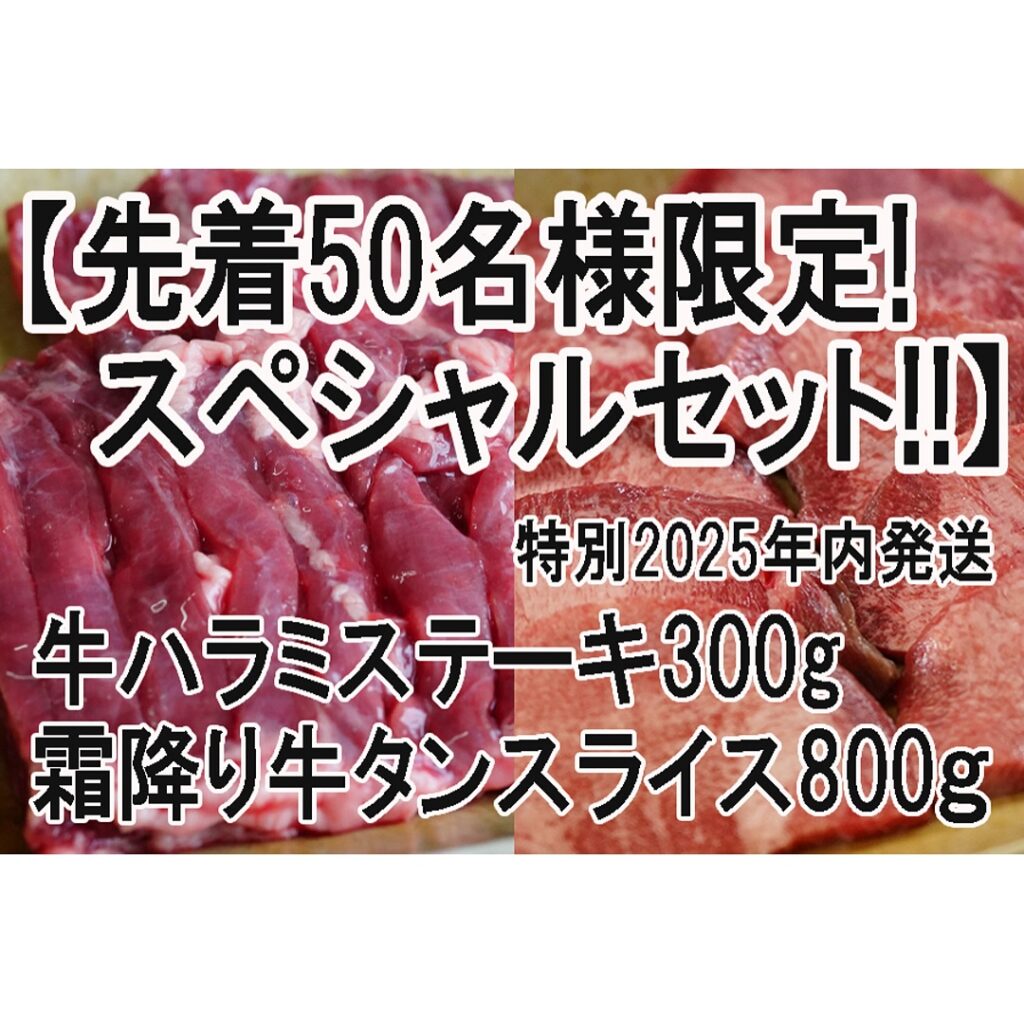 【~ 先着50名様限定! スペシャルセット!! ~牛ハラミステーキ300g & 霜降り牛タンスライス800g(100g×8p)】