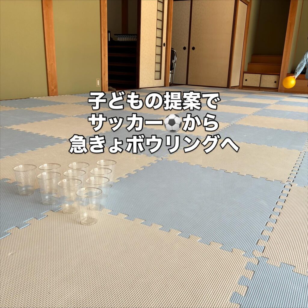 工作用などに置いていたプラコップを持ってくると、ボウリング🎳が始まりました。