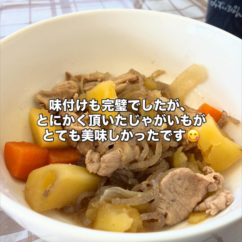 調理段階から、頂いたじゃがいもがとても美味しいそうな色をしていて、実際食べると見た目通り、いや見た目以上に美味しかったです😋
