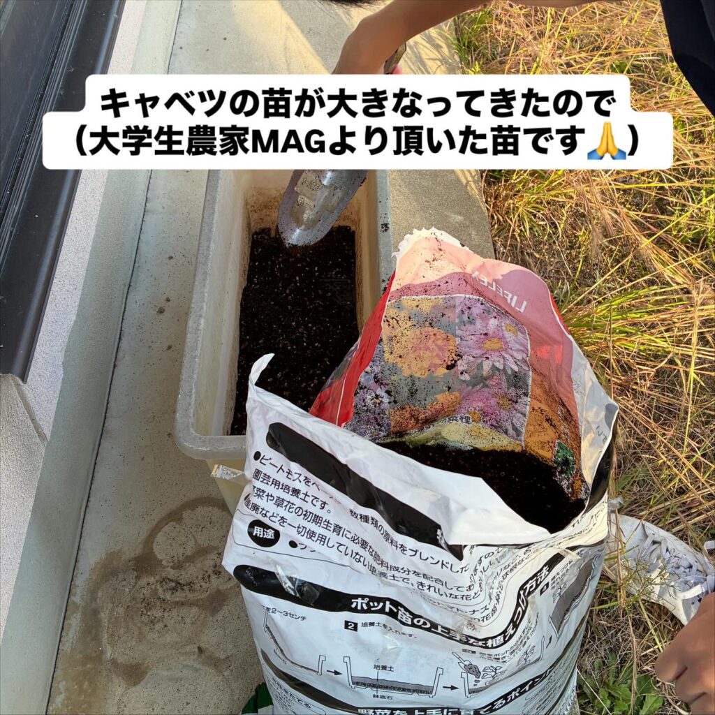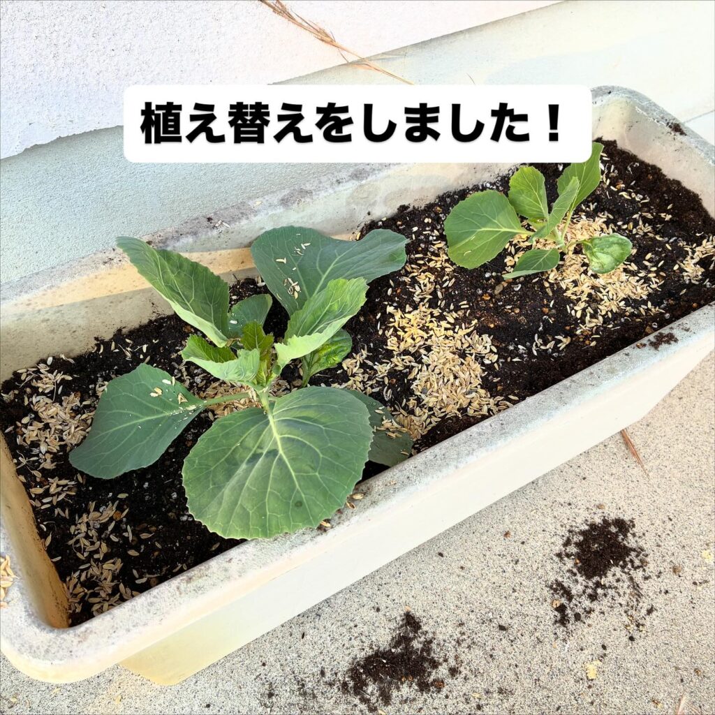 大きくなったキャベツの苗を、プランターに植え替えました❗️