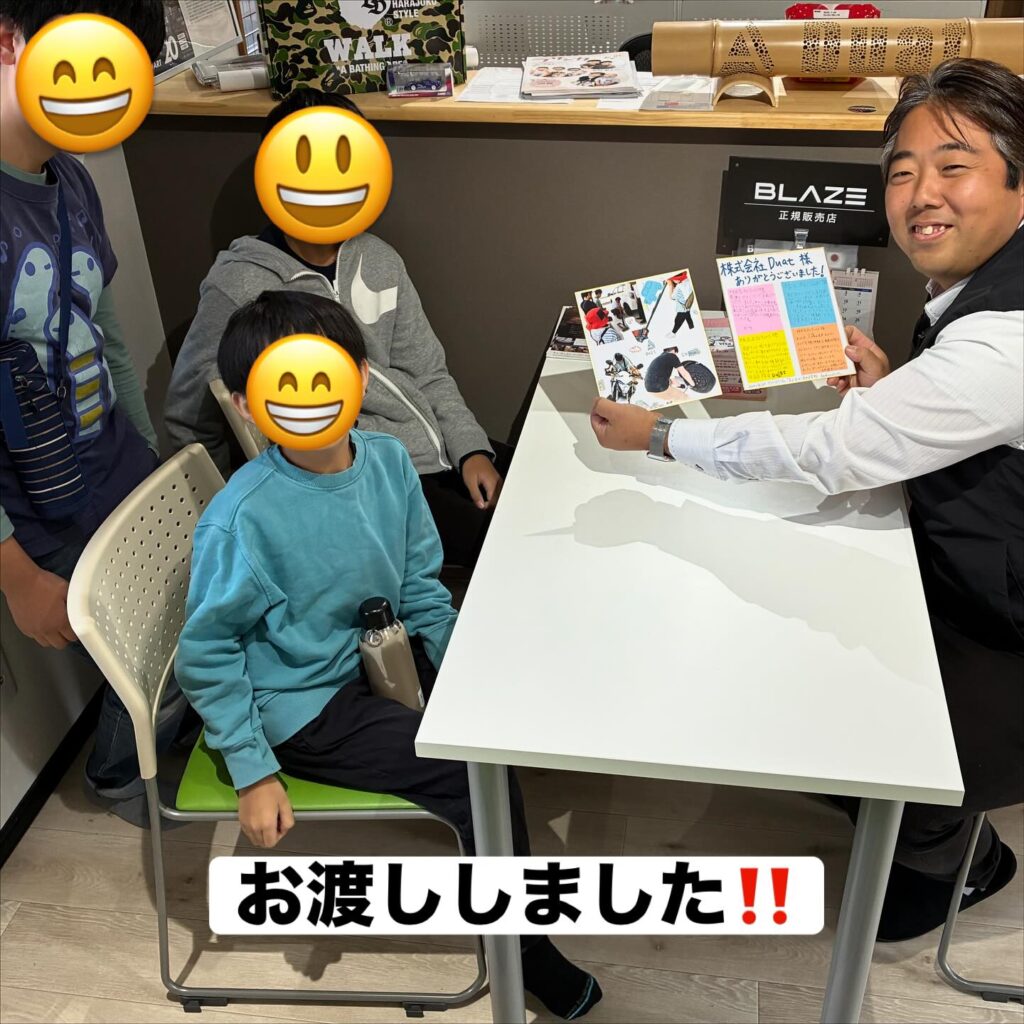 お忙しい中、お時間をとって頂き、社長の足立さんに無事お礼の色紙をお渡ししました😃
