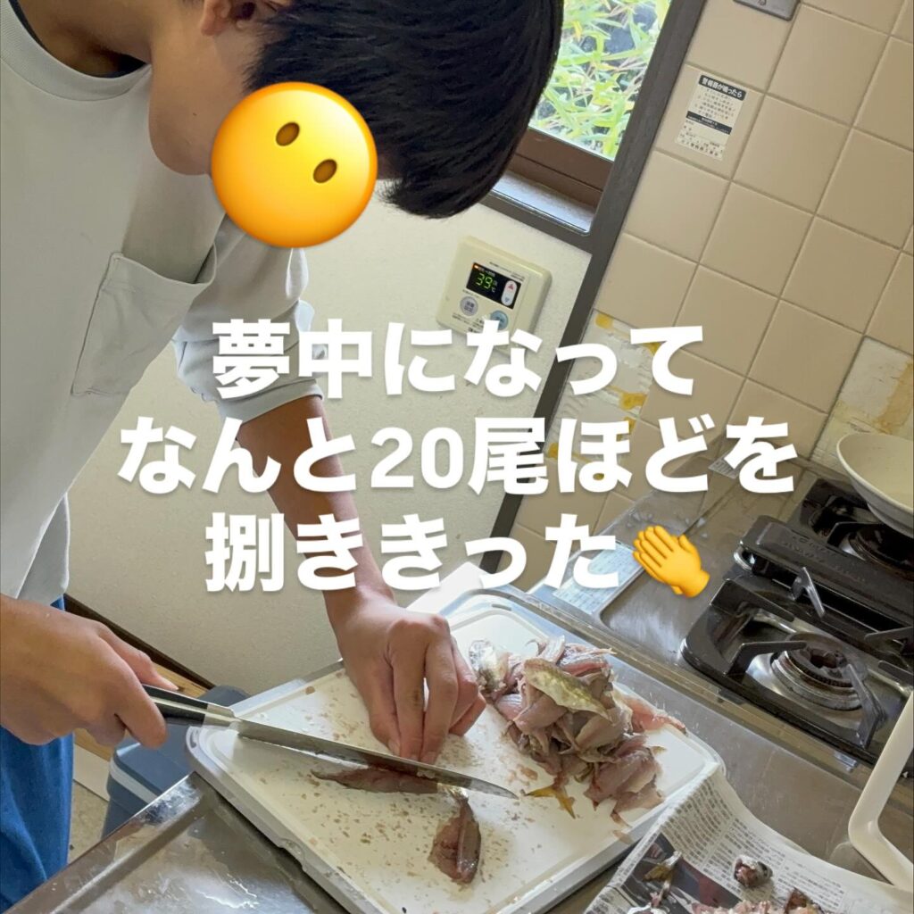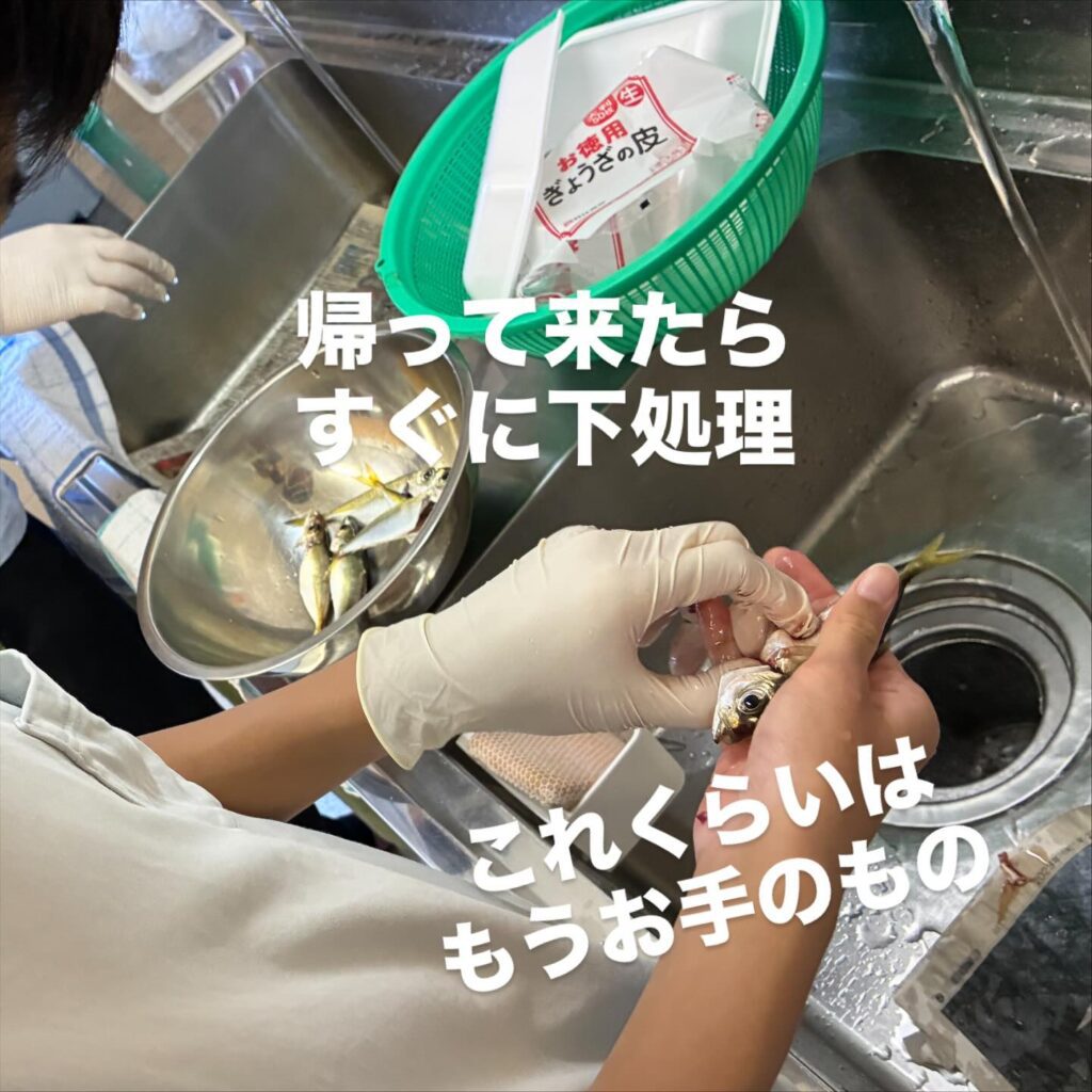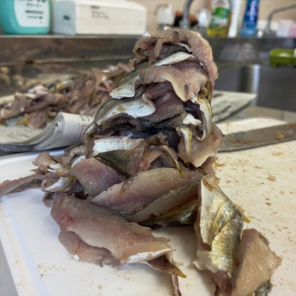 そこから、60匹近いアジの内臓とエラを取り、