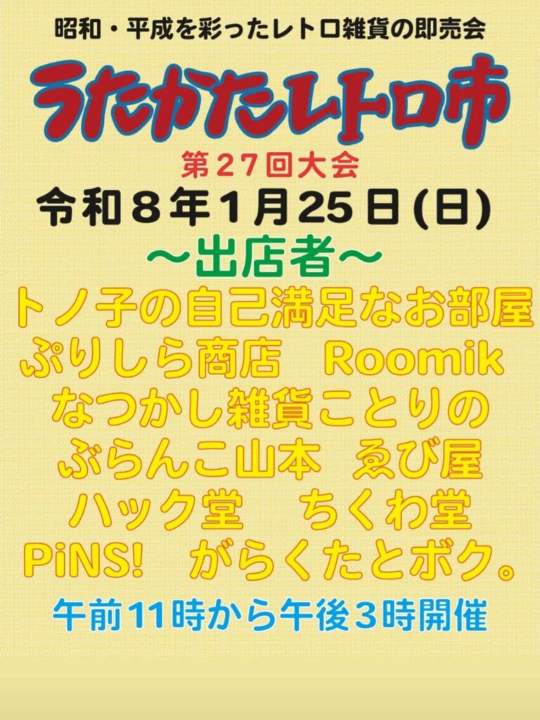 トップページ / お店を探す / リサイクルショップ ぶらんこ山本 / 投稿一覧 / うたかたレトロ市出店します。 2026/01/19 うたかたレトロ市出店します。 お気にいりに入れる TEL :080-4016-4777 TEL :080-4016-4777 1月25日大阪 このお店のニュース一覧へ 運営企業・団体 店舗名 リサイクルショップ ぶらんこ山本 営業時間 09:30~18:00 予算 お菓子10円~ アクセス 日本、京都府福知山市石原1−28 SNSをフォローしよう! SNSでシェアしよう Twitterでシェア FaceBookでシェア リサイクルショップ ぶらんこ山本 お店・会社について 求人情報について お取引について TEL :080-4016-4777 お気にいりに入れる