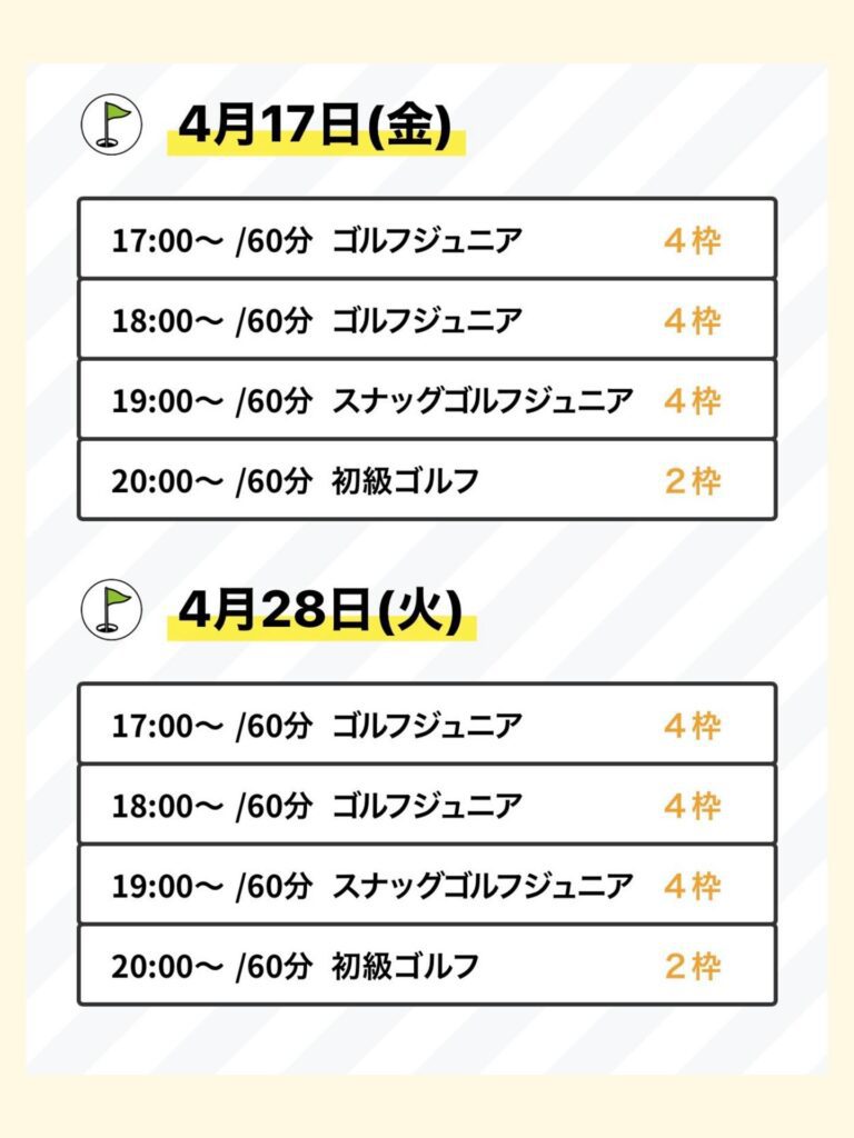 17:00〜ゴルフジュニア 🈵残0枠/4枠